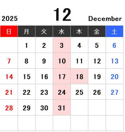 5月定休日及びゴールデンウィーク休みのお知らせ